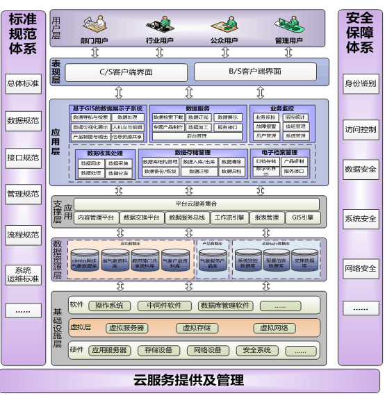 建设基于B/S架构的数据服务子系统,在成熟商用的数据服务总线和应用服务器基础上进行二次开发,以数据产品加工、数据展示、数据接口定制为基础,以数据快速共享服务为目的,实现省级各业务部门对气象资料共享的需求,以多种个性化的方式提供数据共享服务。以省级气象数据中心为基础,提供本省特有资料和产品的共享服务功能,根据各业务部门对气象资料的调用要求,定制开发API接口供用户访问调用数据和系统接入。针对部分需要以文件方式共享的数据,开发数据推送或数据订阅模块,实现部分无法解码的资料和服务产品资料的快速共享。针对各业务单位对数据产品的需求,加工自动站、高空报、数值预报、雷达资料、气象指数等资料的专题产品。